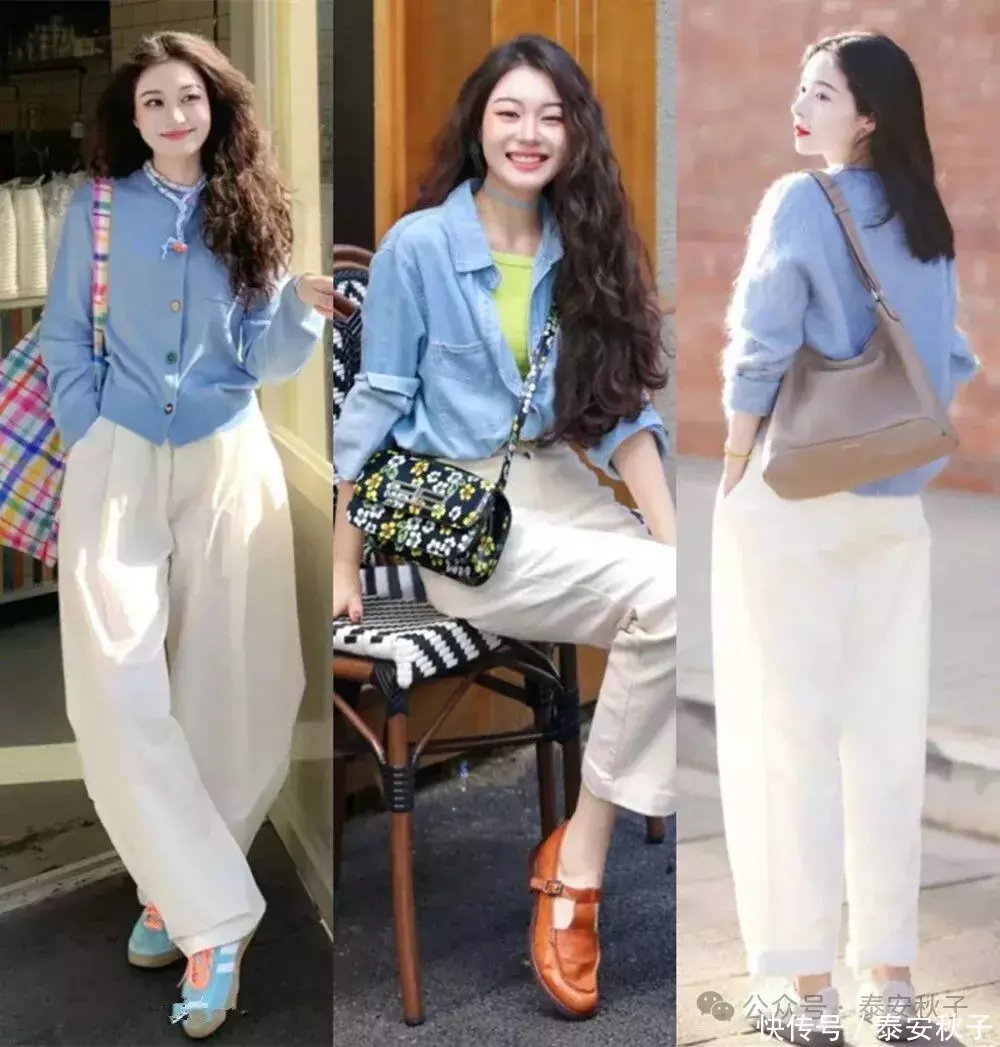 十一放假打算出去玩的姐妹们,可以在行李箱里装条白裤子与彩色调的小衫,随便一搭就是吸睛又出片的秋日look。